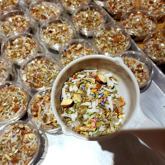 To compliment the chutney, we have Nimkin- a cumin-studded pastry dough, fried until crunchy. More team work :)!